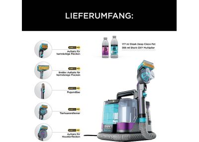 Shark StainStriker HairPro Pet Fleckenreiniger, 450 W Saugkraft, Anti-Clog-Tierhaarextraktor, entfernt hartnäckige Flecken & Gerüche, leicht & tragbar, inkl. 4 Aufsätze und 2 Reinigungsmittel PX250EUT