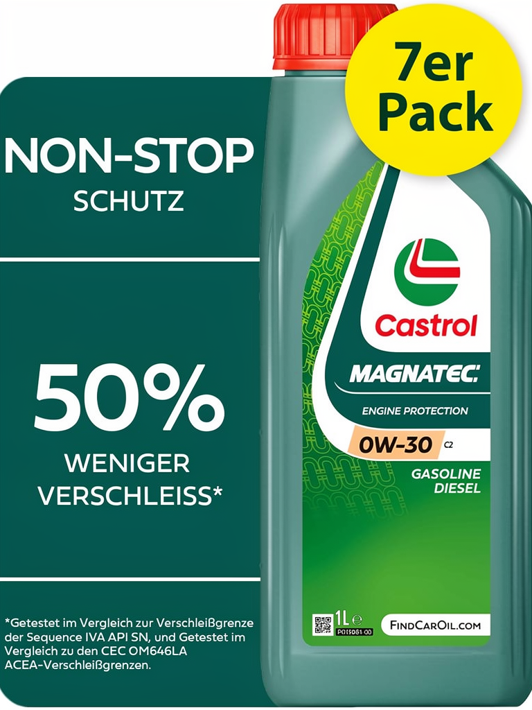 Mit diesem DealClub-Set bekommst du 7 Liter Castrol MAGNATEC 0W-30 C2 – ideal für komplette Ölwechsel plus Reserve. Das hochwertige, vollsynthetische Motoröl wurde für moderne Benzin- und Dieselmotoren entwickelt, bei denen der Hersteller ein ACEA-C2-Öl in der Viskosität 0W-30 vorschreibt.