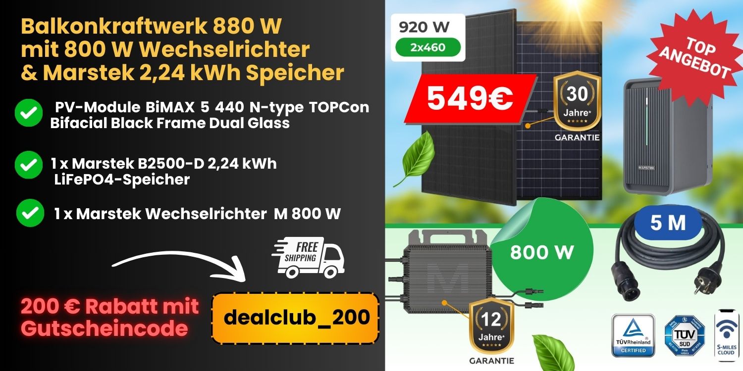 SOLARWAY Balkonkraftwerk 880 Watt | Anker SOLIX Solarbank 2 E1600 Pro 1,6 kWh Speicher