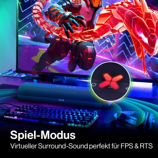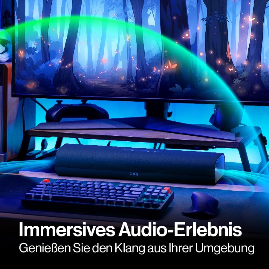 OXS Thunder Lite PC-Gaming-Soundbar, Soundbars für Fernseher mit Virtuellem Surround-Sound, 2 Breitbandtreiber, Bassröhre, Kompaktes Design, HDMI/Aux/Optisch Kompatibel, Bluetooth 5.0-Funkverbindung