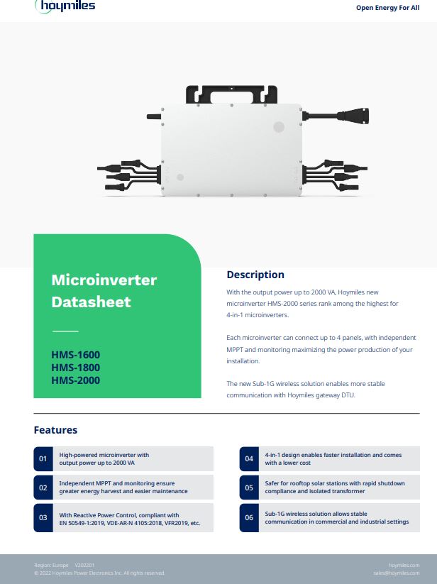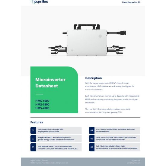 - 1 x Hoymiles HMS1600 Wechselrichter – für eine stabile und zuverlässige Umwandlung von Gleichstrom in Wechselstrom.