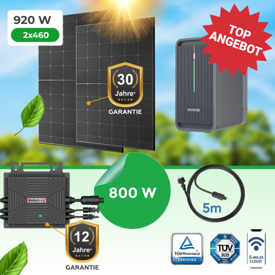 Dieses Balkonkraftwerk-Set mit 920 Watt Solarmodulleistung, 800 Watt Wechselrichter und 2,24 kW Speicher ist eine umfassende Lösung für alle, die nachhaltig und autark Energie erzeugen möchten. Profitieren Sie von einer langen Garantiezeit und innovativen Technologien, die eine dauerhafte Energieversorgung für Sie und kommende Generationen sicherstellen. Nutzen Sie die Gelegenheit, 30 % zu sparen, und bestellen Sie jetzt Ihr Balkonkraftwerk für eine grünere Zukunft!