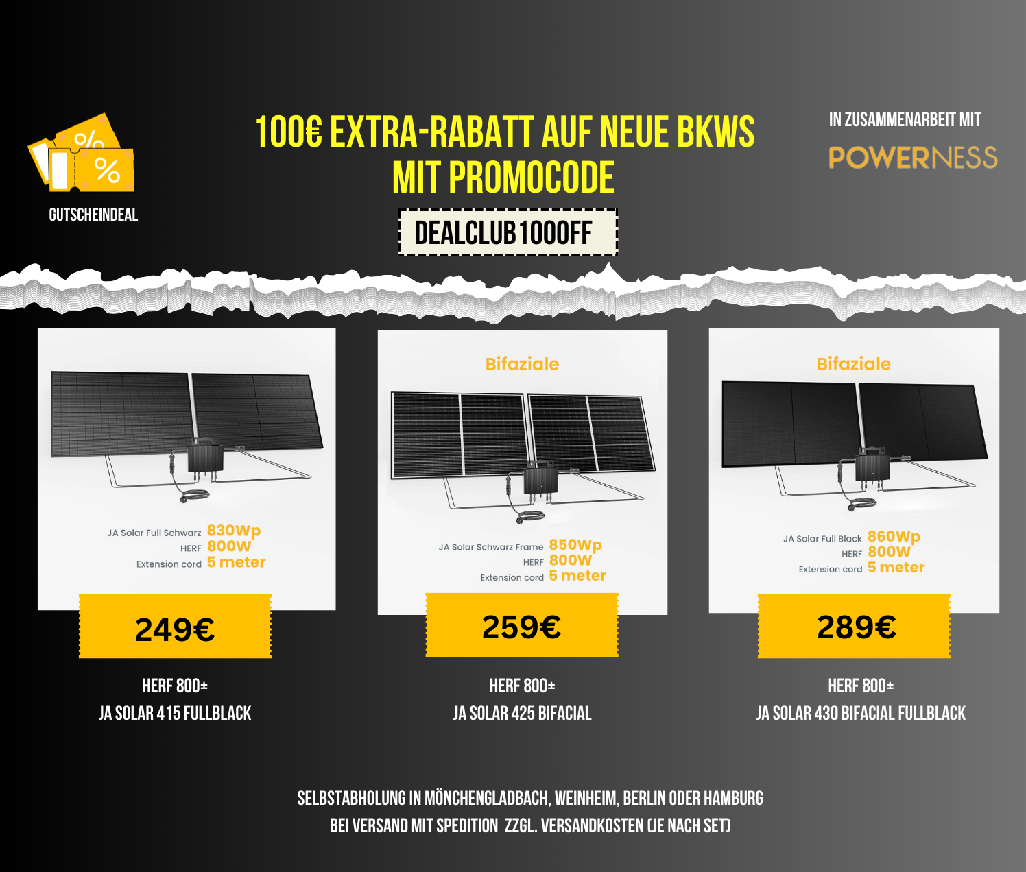 Balkonkraftwerk 800W HERF Wechselrichter, JA Solar Solarmodul 830/850/860Wp Bifaziale Deal