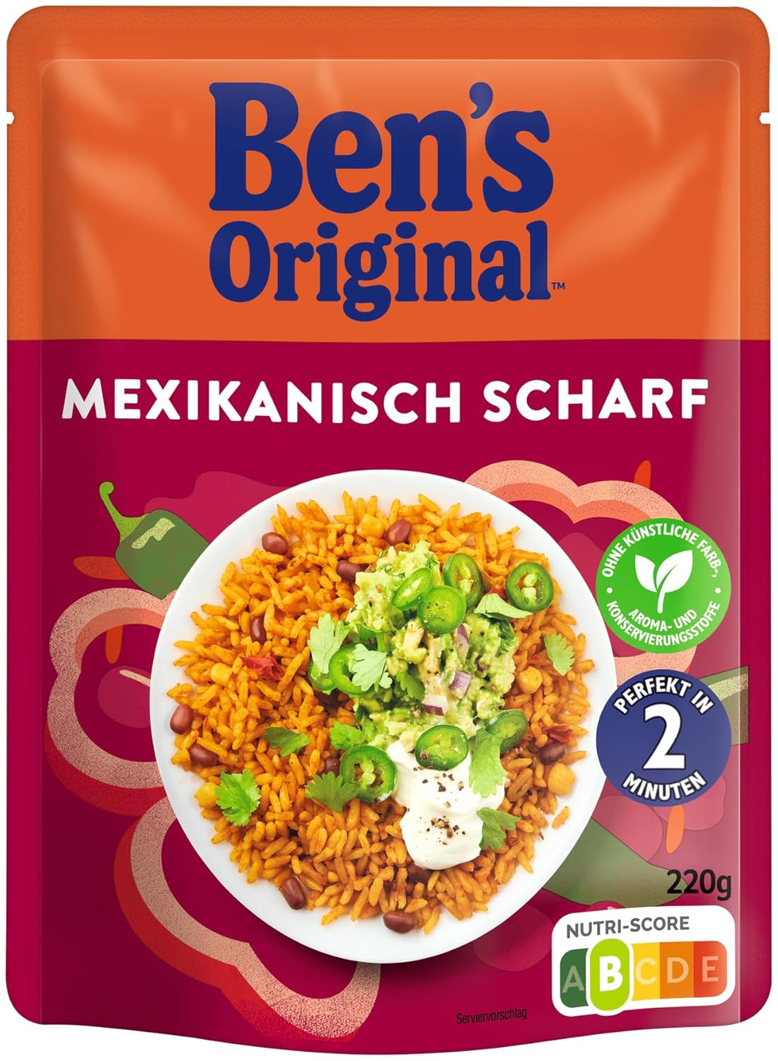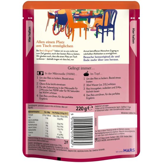 Unser köstlicher BEN'S ORIGINAL™ Express Reis mexikanisch scharf ist mit sorgfältig ausgewählten Paprika, Chili und Adzukibohnen verfeinert.