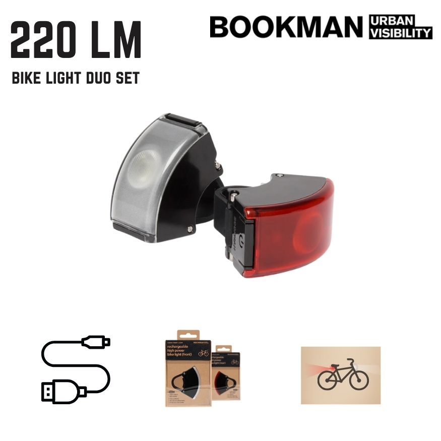 Bookman Curve Bike Light Set - Sicherheitsfrontlicht und Rücklicht für Fahrrad- mit USB