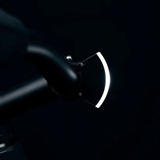 Wiederaufladbare Fahrradleuchte mit einer Helligkeit von bis zu 220 Lumen und einer Laufzeit von bis zu 70 Stunden. Dank des elastischen Silikonbands lässt sie sich einfach am Lenker befestigen und abnehmen. Die Batterieanzeige und der Einschaltknopf befinden sich oben, gleichzeitig dient er als Verschluss. 0,7 Sekunden gedrückt halten, um die Leuchte ein- oder auszuschalten. Mit einem Klick wechseln Sie zwischen den vier verfügbaren Modi. Das über die Seiten hinausragende Glasdesign sorgt für ein breites Lichtspektrum, nicht nur vor dem Radfahrer, sondern auch seitlich reflektiert. Die Curve Light wurde mit dem renommierten ABC Mobility Award für herausragendes Produktdesign ausgezeichnet.