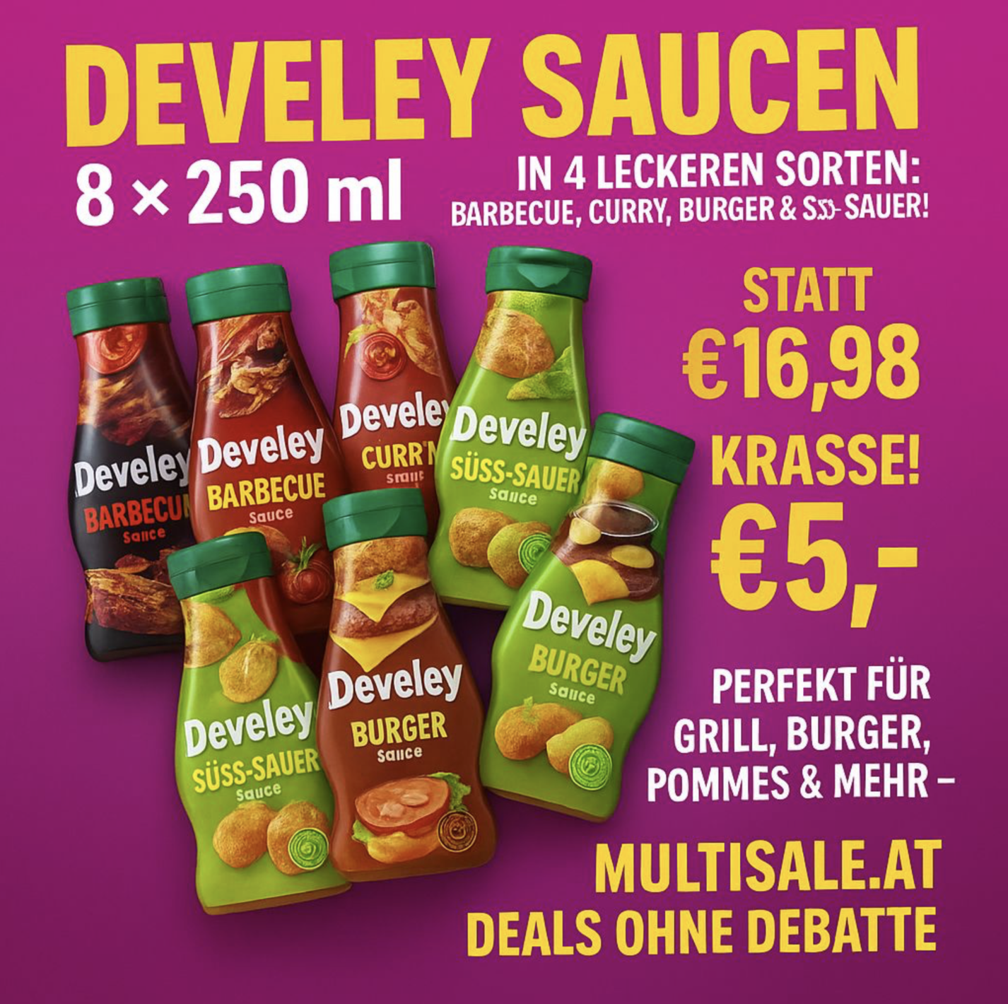 Develey Saucen 4 Sorten gemischt 8 x 250 ml (MHD 01/02/03/ 2026)