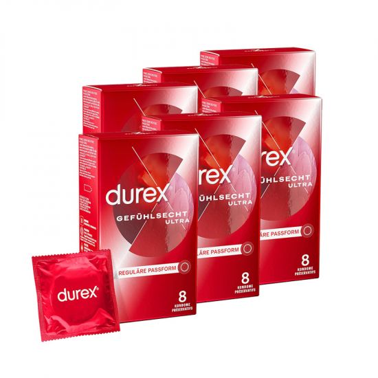 - LIEFERUNG: Im Lieferumfang enthalten sind 6 x 8 Stück original Durex Gefühlsecht Ultra Kondome. Unsere Produkte werden diskret geliefert, so dass man an der Umverpackung nicht erkennt, was drin ist