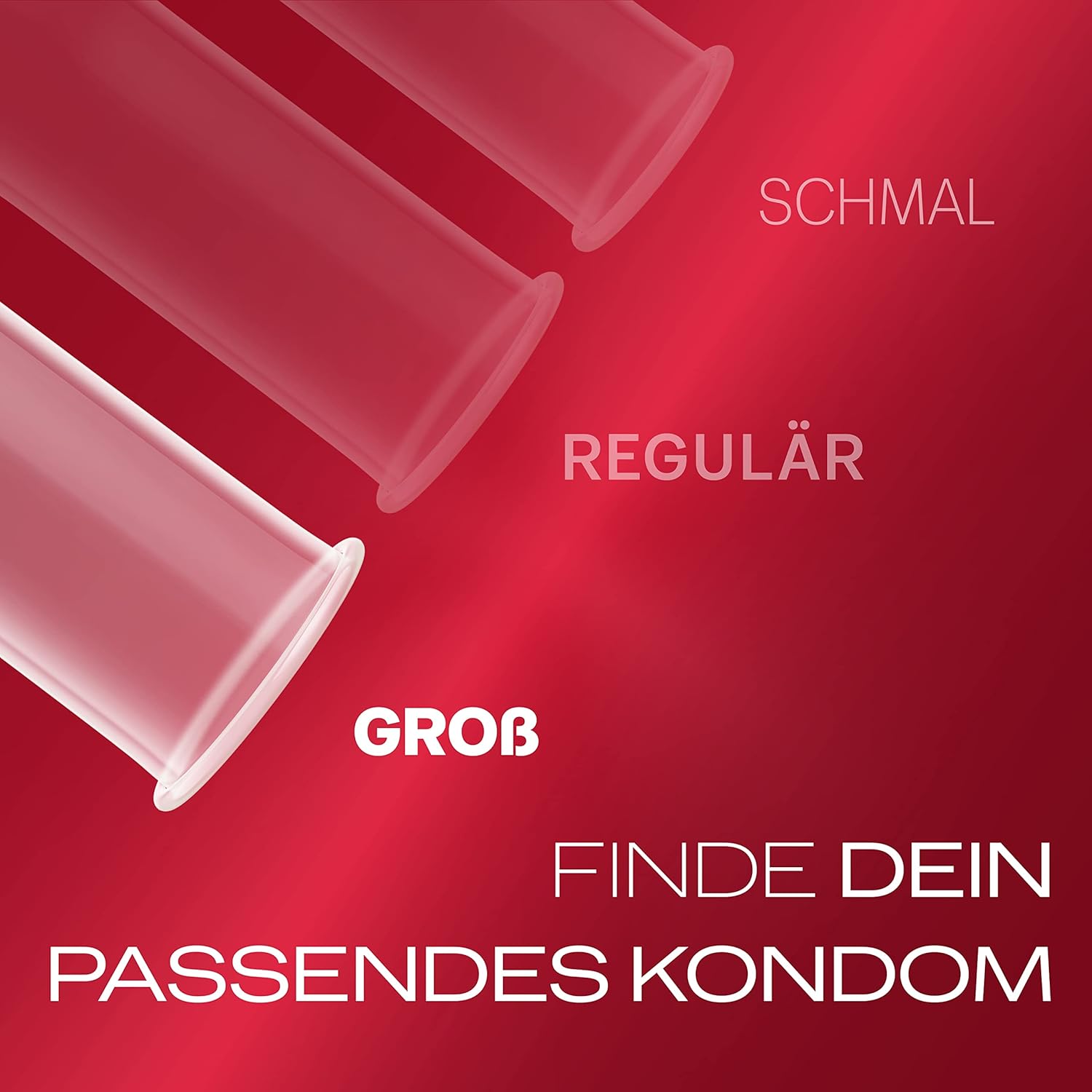 - DIE RICHTIGE GRÖSSE IST SEXY: Damit sich der Sex gut anfühlt und ihr optimal geschützt seid, ist die richtige Kondomgröße wichtig. Durex Gefühlsecht XXL Kondome besitzen eine nominale Breite von 60 mm (große Passform)
