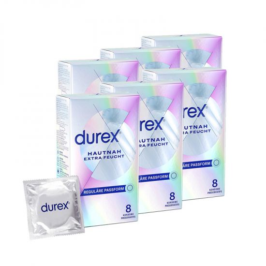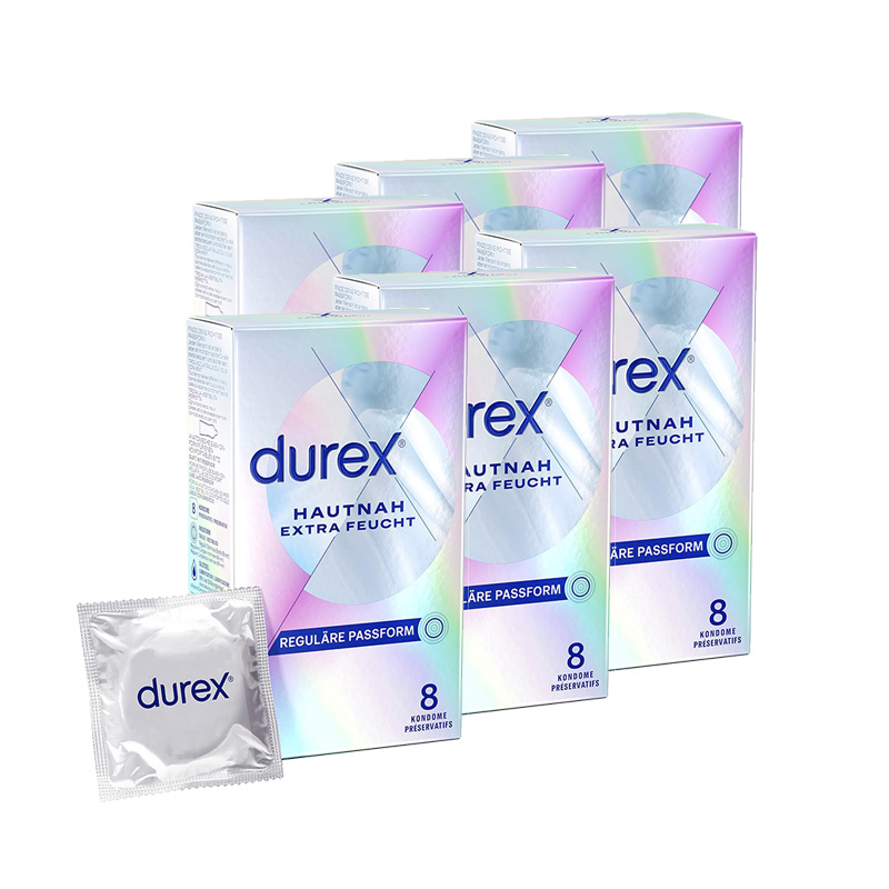 - LIEFERUMFANG: Im Lieferumfang enthalten sind 6 x 8 Stück original Durex Hautnah Extra Feucht Kondome