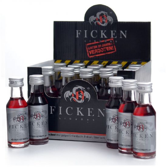 FICKEN Likör, der besondere Partyschnaps aus Jostabeeren, schmeckt gut, sieht gut aus und gibt jede Menge Gesprächsstoff. In diesm Karten sind 20 Miniaturflaschen enthalten zum praktischen Verteilen auf Partys oder wo auch immer. Hersteller: EFAG GmbH & Co. KG, Neue Welt 32, 88471 Laupheim, Deutschland