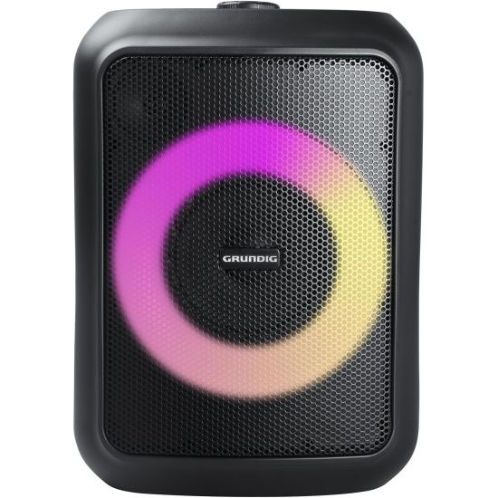 Der Grundig Party Hit Bluetooth Lautsprecher sorgt mit 90 W Leistung und dynamischen RGB Lichteffekten für echten Partysound. Über Bluetooth 5.0 streamen Sie Ihre Lieblingsmusik kabellos mit einer Reichweite von bis zu 10 Metern. Die True Wireless Stereo Funktion liefert klaren Stereoklang und die integrierte Bassreflexöffnung sorgt für satten Bass. Der wiederaufladbare Lithium-Ionen-Akku mit 2200 mAh ermöglicht bis zu 12 Stunden Musikgenuss. Mit der integrierten Powerbankfunktion können Sie unterwegs kompatible Geräte bequem aufladen. Durch den Spritzwasserschutz nach IPX4 ist der Lautsprecher ideal für Garten, Strand oder Ausflüge geeignet. Dank Tragegriff und stabilem Gehäuse bleibt der Party Hit flexibel einsetzbar und überzeugt durch einfache App-Steuerung sowie vielseitige Anschlussmöglichkeiten über Bluetooth, AUX oder Mikrofoneingang. Hersteller: Beko Germany GmbH, Rahmannstraße 3, 65760 Eschborn, Deutschland, Kundenservice: https://www.grundig.com/de-de/service/support, [email protected]