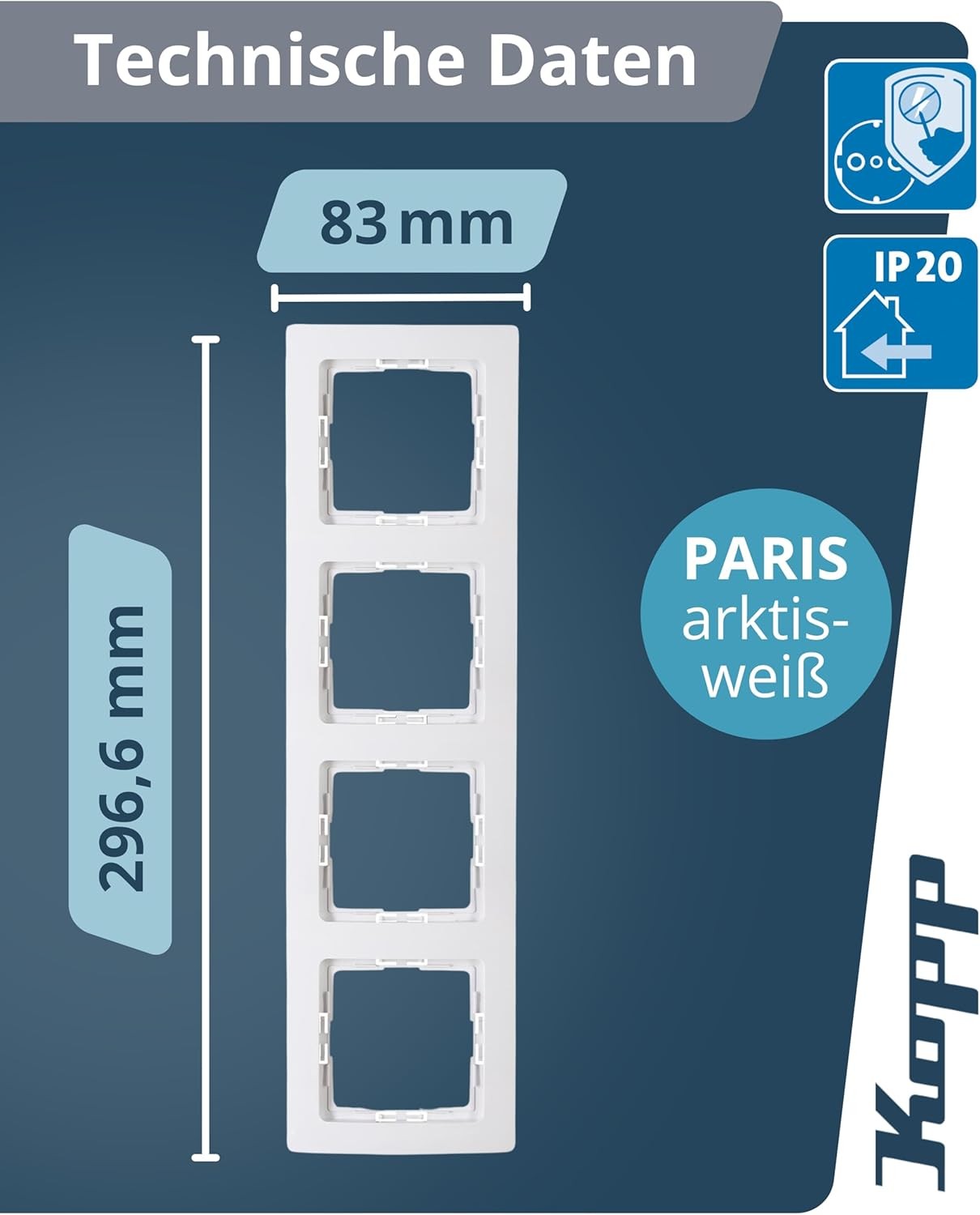 Kopp PARIS 4-fach Abdeckrahmen Rahmen f Steckdosen & Schalter Steckdosenrahmen