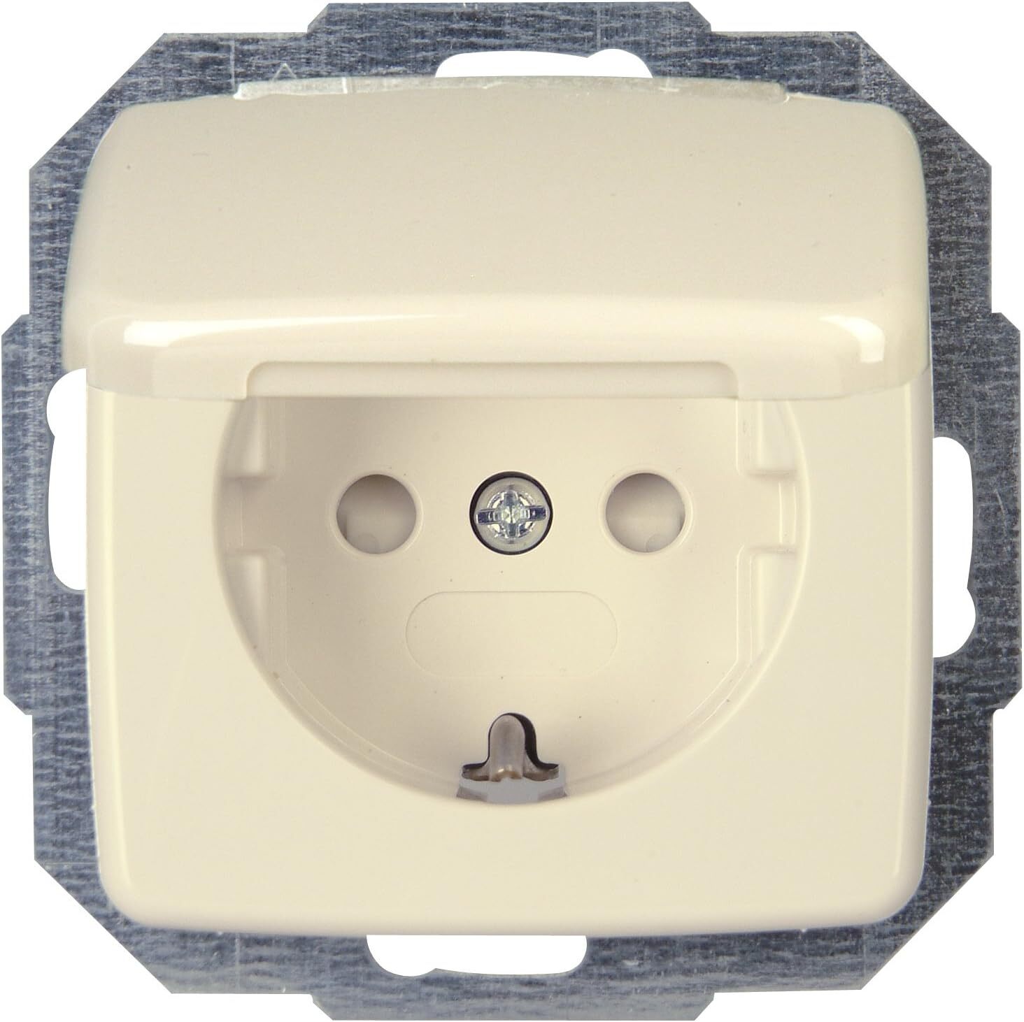 Kopp Rivo Schutzkontakt-Steckdose mit Deckel Berrungsschutz Stecker Creme