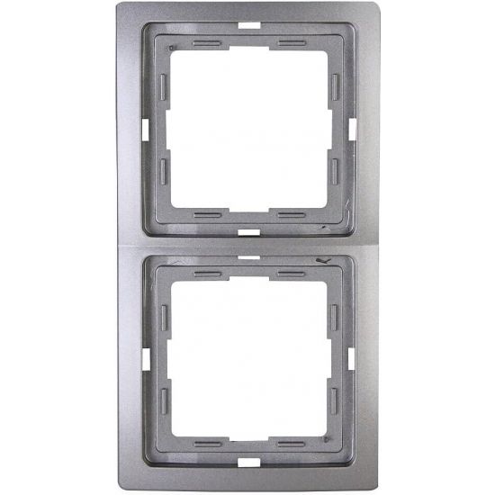 2-facher Abdeckrahmen in der Farbe Platin. Geegnetf senkrechte, sowie waagrechte Installation all er Komponenten des Programms VENEDIG, Schutzart IP20