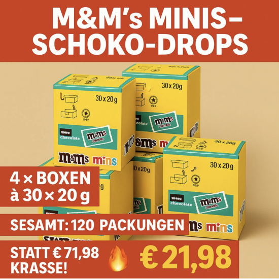 M&M`s Minis Schoko-Drops 4 Packungen je 30 x 20 g - (MHD 10/11/ 2025)
