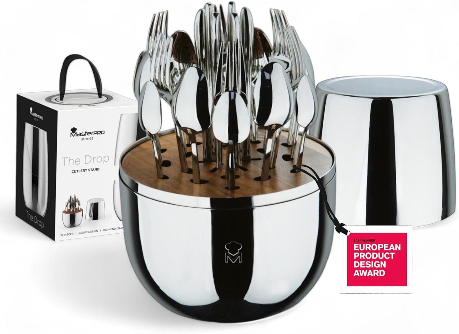 Dieses Besteckset ist nicht nur praktisch, sondern gleich ein kleines Design-Statement auf deinem Tisch. Das MasterPro „The Drop“ 24-teilige Besteckset kommt mit einem stylischen Halter und macht aus jedem Essen einen kleinen Restaurant-Moment – egal ob Alltag oder Dinner mit Freunden.