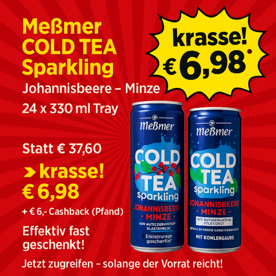 Messmer Cold Tea Sparkling Johannisbeere Minze 24 x 330ml Mindesthaltbarkeit (MHD) verkürzt oder überschritten, Ware einwandfrei