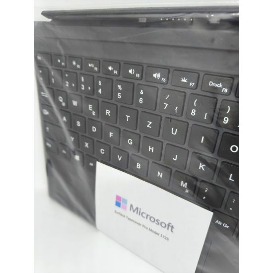 Verwandeln Sie Ihr Surface Pro 3, Pro 4, Pro 5, Pro 6, Pro 7 mit dem Surface Pro Type Cover in ein Premium-Laptop. Mechanische Tastatur mit Hintergrundbeleuchtung und Magnetdock. Das Surface Pro Type Cover sticht als eines der dünnsten, erhältlichen Tastaturen hervor und ermöglicht die Schreibgeschwindigkeit und Funktionen einer herkömmlichen Laptoptastatur. Es verfügt über eine Hintergrundbeleuchtung, sodass Sie auch im Dunkeln weiterarbeiten können. Für höhere Flexibilität lässt es sich einfach magnetisch anbringen und lösen. Windows-Tastenkombinationen, Funktionstasten und Mediensteuerelemente erleichtern die Navigation auf dem Surface, ohne dass Sie dazu die Hände von der Tastatur nehmen müssen. Das kompakte Trackpad ermöglicht die Steuerung des Cursors mit der Fingerspitze. Beim Zuklappen werden die Tasten automatisch deaktiviert, um unabsichtliches Tippen zu verhindern. Wenn Sie Surface Pro Type Cover schließen, wird das Display ausgeschaltet, und der Bildschirm ist vor Stößen und Kratzern geschützt. Kompatibilität · Surface Pro 3, Pro 4, Pro 5, Pro 6, Pro 7 (passt nicht für X,8,9,11,12!) Abmessungen · 295mm x 217mm x 4.8mm Gewicht · 295 g Tasten · Aktivierung: Bewegliche (mechanische) Tasten · komplette Funktionstastenreihe (F1 - F12) · Reservierte Tasten für Windows-Tastenkombinationen und Medienzugriff Schnittstelle · Magnetisch Sensoren · Beschleunigungssensor Lieferumfang - 1x Microsoft Surface Pro Type Cover wiederaufbereitet, reprinted mit Rechnung auf Ihren Namen mit ausgewiesener MwSt.
