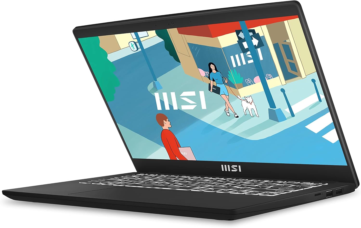 MSI Modern 14 C13M-613IT, 14" FHD 60Hz, Intel Core i7-1355U, Intel Iris Xe, 16GB DDR4-3200, 512GB SSD PCIe 3.0, Wi-Fi 6, Windows 11 Home, italienisches Layout & Garantie, Schwarz