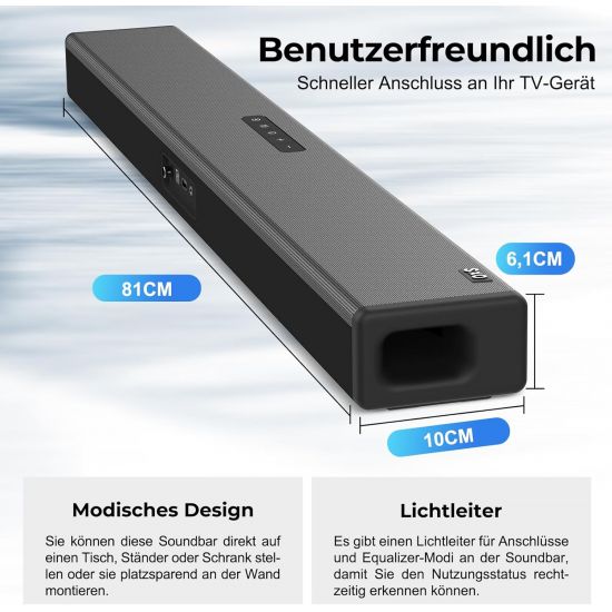 OXS S3 Soundbar für Fernseher, Heimkino-Audio mit Bluetooth 5.0, dynamischer Bass, 3D-Surround-Sound, Dialogverbesserung, AUX/optisch/koaxial kompatibel, mehrere Klangmodi, wandmontierbar