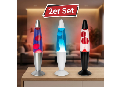 2er Set Fisura GIFTMARKET - Lavalampe. Nachttischlampe mit 2 enthaltenen Glühbirnen. Lustiges Geschenk für Jugendliche. Retro-Lampe, 34 x 8,5 cm