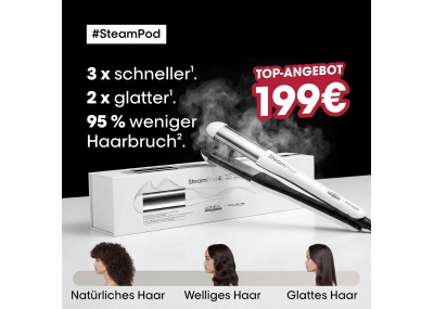 L'Oréal Professionnel SteamPod 4, All-in-One-Dampfstyler, Professionelles Glätteisen mit Dampftechnologie für alle Haartypen, glatt bis lockig