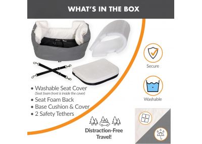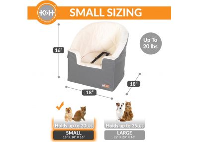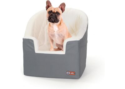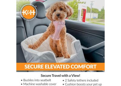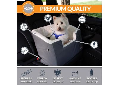 K&H Haustierprodukt Eimer Booster Hundeautositz mit Hundesicherheitsgurt für Auto, waschbarer Kleiner Hundeautositz, stabile Hundeerhöhung für kleine Hunde, 2 Sicherheitsleinen, klein/grau/Creme