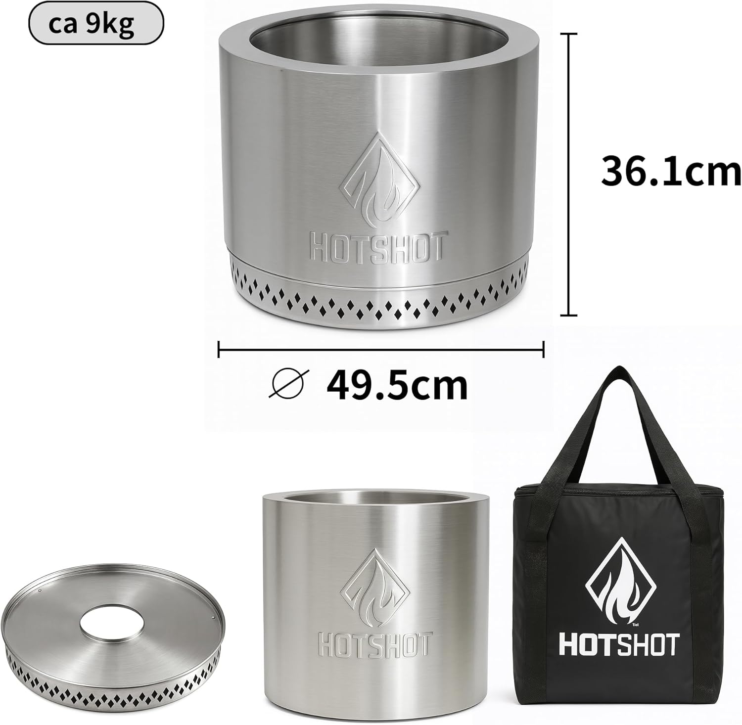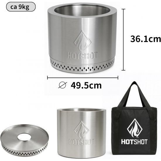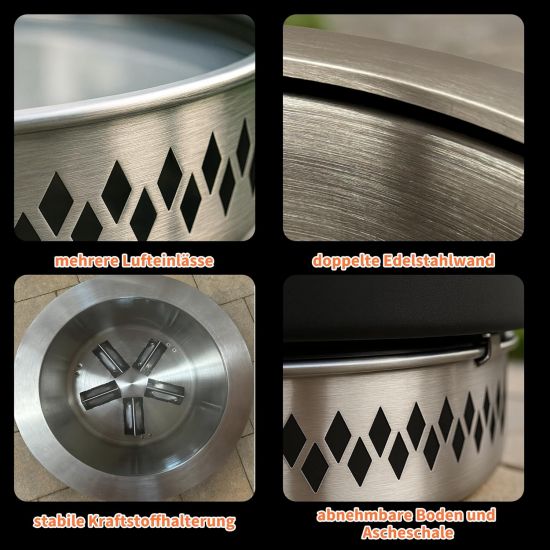- Produktmaß und Gewicht: ca. Ø 49,5 × H 36,1 cm, ca 9 kg, 100% Edelstahl 304 , Die wetterfeste Tragtasche, der abnehmbare Boden und die Ascheschale sind im Lieferumfang enthaltet.