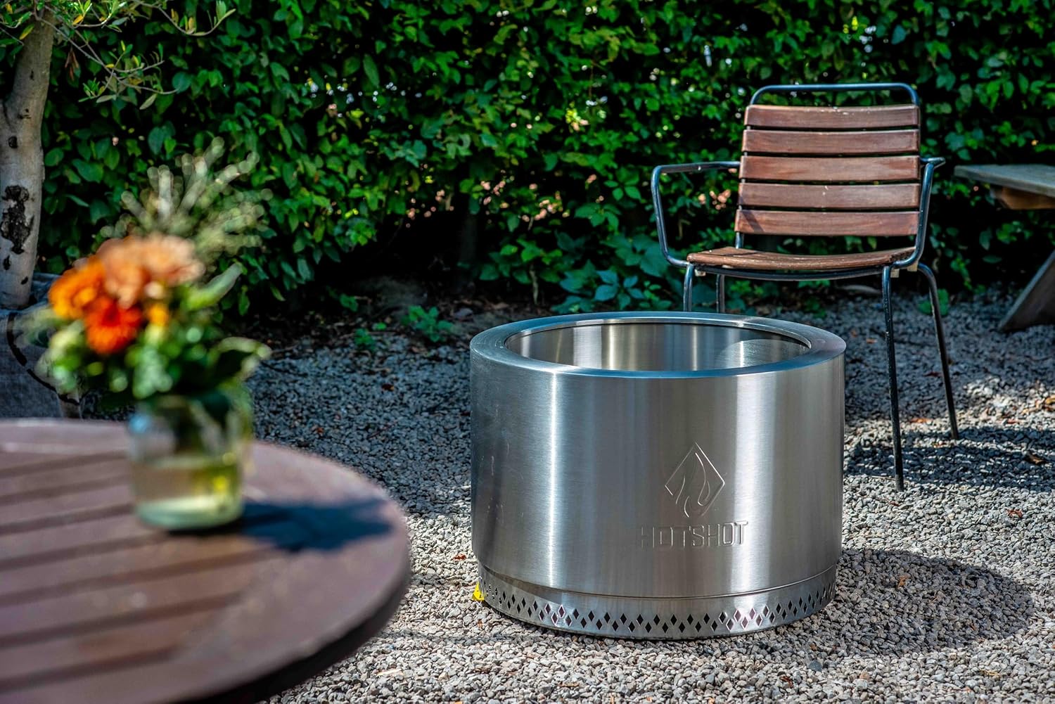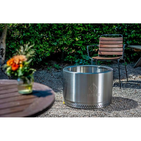 Raucharmes Feuerfass Ø 49,5 cm in Silber– doppelwandiger 304-Edelstahl inkl. Tragetasche