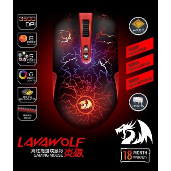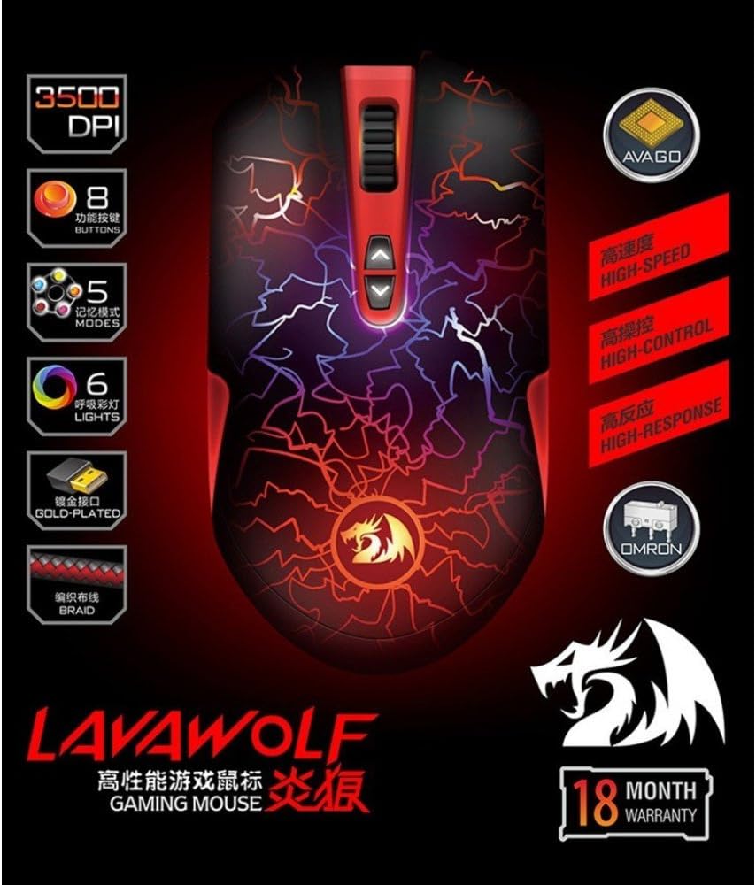 REDRAGON LAVAWOLF Maus USB Optisch 3500 DPI rechts - Mäuse (rechts, Optisch, USB, 3500 DPI, 6666 fps, Schwarz, Rot)