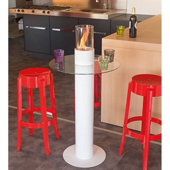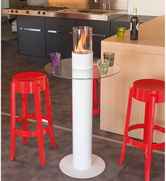 Caorle Flammendes Feuer für mit Bistro Tischplatte und Ethanol Feuersäulen. Sie können die Feuerstelle ganz unkompliziert ohne Genehmigung und Kaminbau nutzen. Schaffen Sie eine Atmosphäre voller Wärme und Behaglichkeit. Ob im Sommer im Freien oder im Winter in Ihren Räumen. Aber auch In jeden anderen Raum bringt ihnen die Feuersäule Carole das gewisse Ambiente um dem Alltagsstress einfach mal zu entfliehen und alleine oder mit Freunden zu entspannen. Genießen Sie das Flair der offenen Flamme ohne Asche, Ruß oder störenden Rauch in den eigenen 4 Wänden oder Ihrem Cafe,Gaststätte.Restaurant usw.Flamme ohne Asche oder Ruß Material lackierter Stahl, 500 ml zylindrischer Brenner mit Keramikfasern und Brennersperre, Kugelschutzglas und eingebautem Glasbeistelltisch