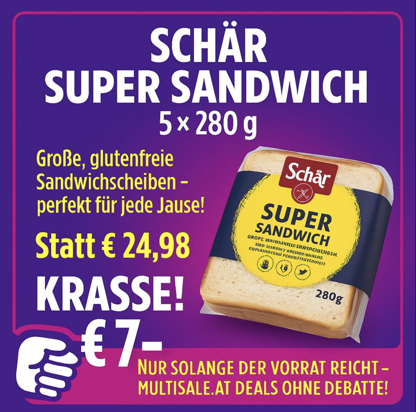 Schär Super-Sandwich 5 x 280 g (MHD 11/12/ 2025)