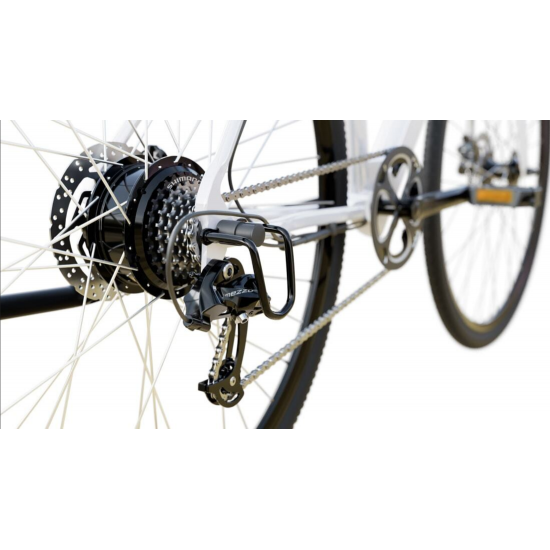 Das E-Bike ist mit einem IP66 wasserdichten TFT LCD Farbdisplay und hydraulischen Shimano Disc Bremsen ausgestattet.
