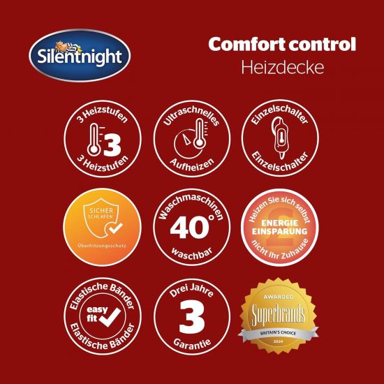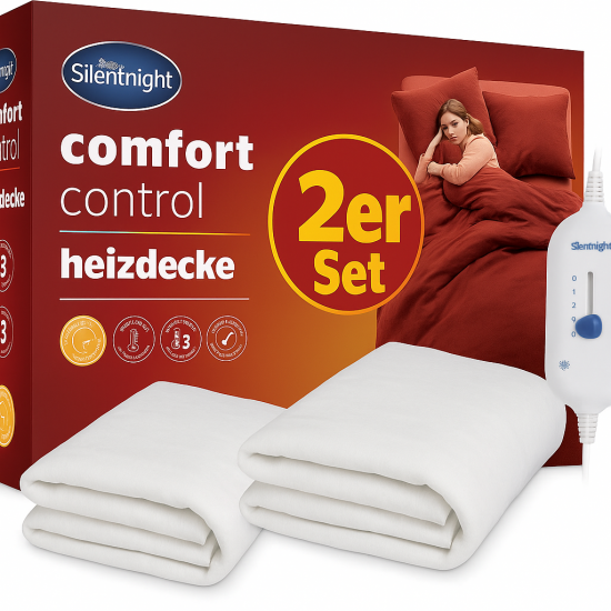 2er Set Silentnight Comfort Control Wärmeunterbett 80x150cm | Heizdecke Bett mit 3 Heizstufen, Ultraschnelles, Aufheizen Elastische Bander Waschmaschinen Waschbar | Heizunterlage Bett Heizmatte