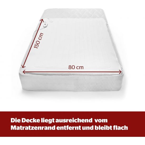 - SICHER SCHLAFEN: Ein Überhitzungsschutz sorgt für absolute Sicherheit. Mit den Maßen 150cm x 80cm liegt die Decke ausreichend von den Rändern entfernt, um sicherzustellen, dass sie zur Sicherheit flach bleibt