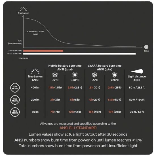 - Lichtleistung von 400 Lumen: Sorgt für helles und effizientes Licht bei Outdoor-Aktivitäten in der Dunkelheit