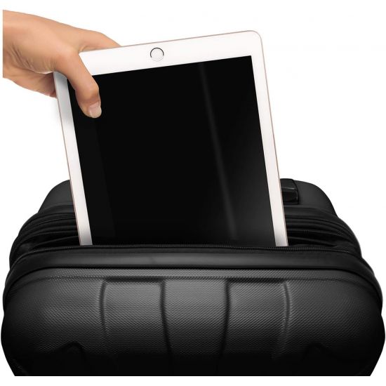 - griffbereit von außen durch zusätzlichen Reißverschluss oder aus dem Kofferinnern