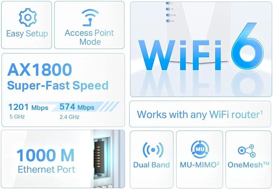 Wi-Fi 6 | WLAN-Geschwindigkeit bis zu 1800Mbit/s | Schluss mit Funklöchern | Hochgeschwindigkeitsmodus | Eingebauter Access Point Modus | Tether-App für einfache Verwaltung | Gigabit-LAN-Port