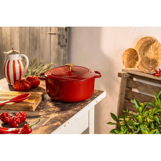 Egal ob auf Induktion, Gas, Keramik, Elektro oder im Backofen: Dieser gusseiserne Topf ist ein echter Allrounder – auch beim Brotbacken oder Grillen im Freien. Ideal für Genießer, die Wert auf Qualität, Langlebigkeit und italienische Kochtradition legen.
