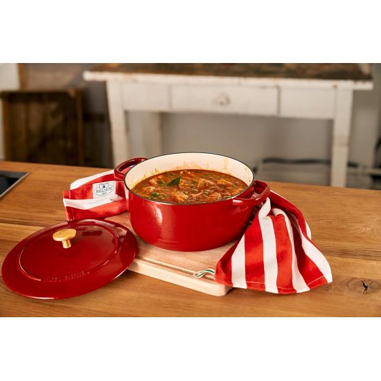 Entdecken Sie kulinarische Vielfalt mit unserem runden Schmortopf aus massivem Gusseisen – ideal zum Braten, Schmoren, Backen und langsamen Garen. Die 7 Liter große Auflaufform kombiniert traditionelle Kochkunst mit moderner Funktionalität und stilvollem Design.